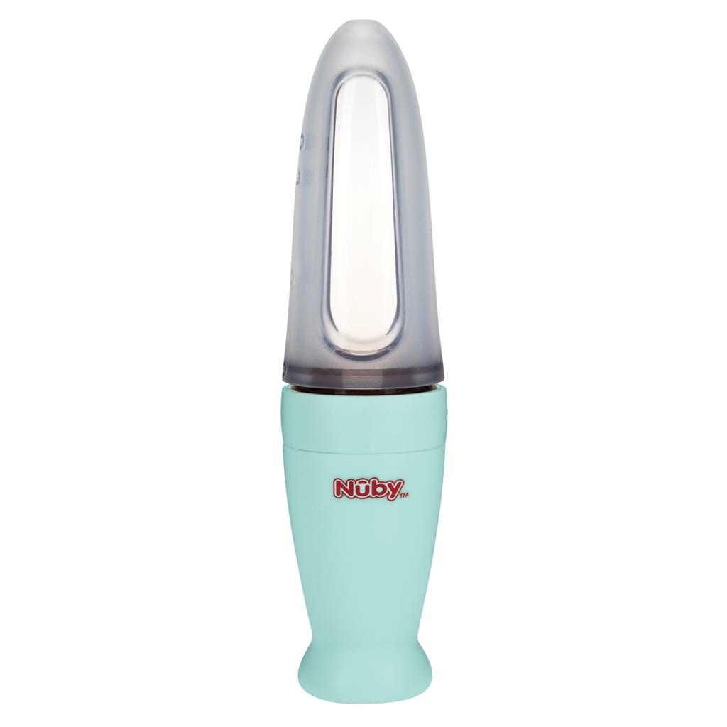 Lo Squeeze Feeder di Nuby in silicone aiuta ad alimentare il bambino con purea di frutta e verdure in maniera pratica e semplice.