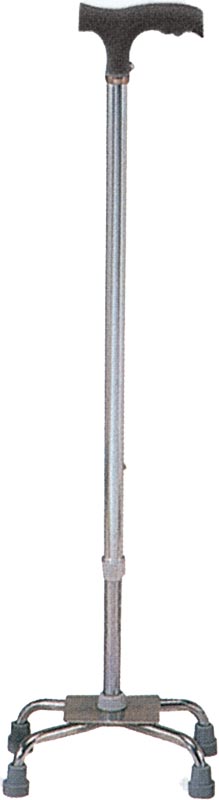 Quadripode Q2 in alluminio regolabile con base piccola e manico in PU, colore argento.