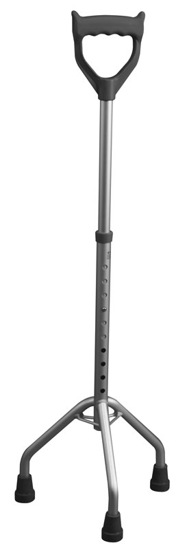 Tripode base larga con manico chiuso, impugnatura anatomica. Interamente realizzato in alluminio anodizzato. Puntali antiscivolo in gomma morbida.