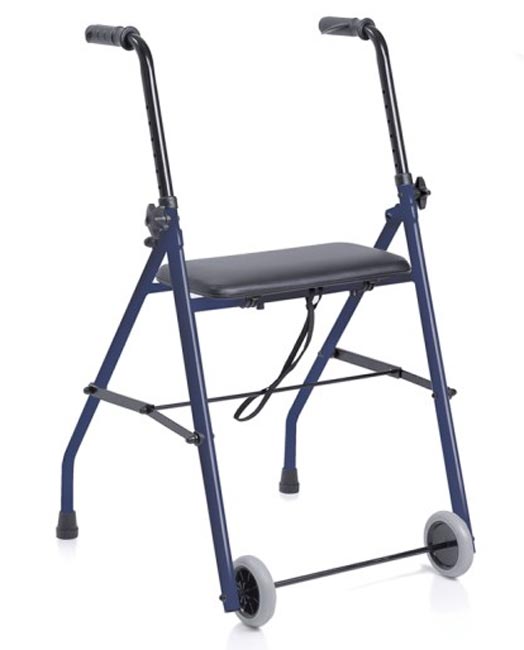 Deambulatore Nettuno, pratico e pieghevole per risparmiare spazio quando non viene utilizzato o durante i trasporti. E' dotato di 2 ruote frontali fisse e 2 piedini posteriori.