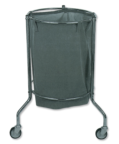 Carrello biancheria con struttura cromata dotata di 3 rotelle Ø 80 mm. Sacco asportabile.
