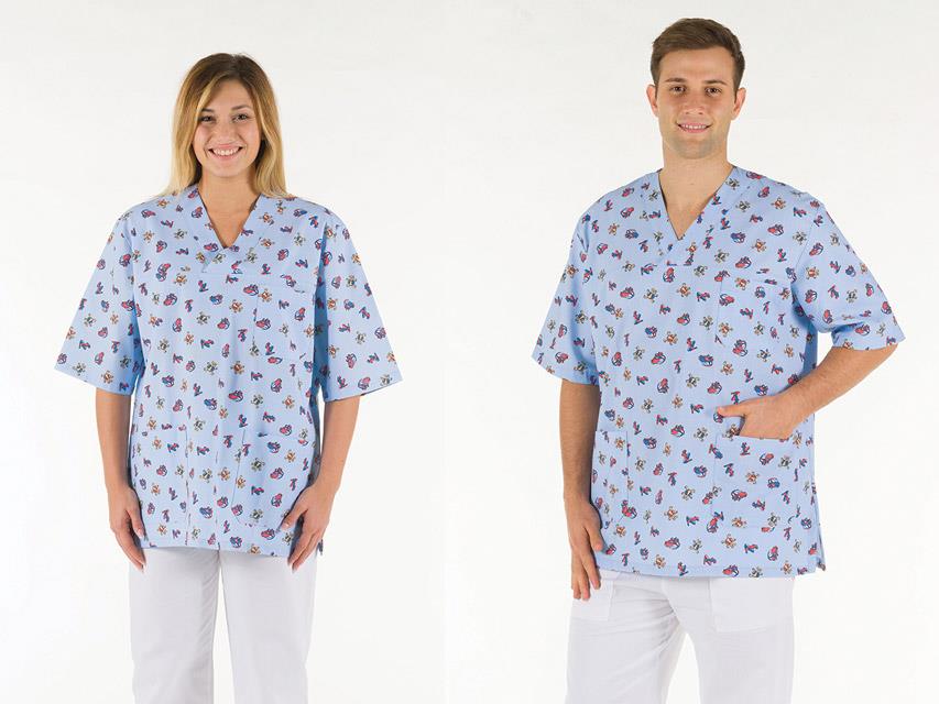 Linea professionale di qualità in cotone 100%. Quattro diverse taglie disponibili su fondo azzurro.
