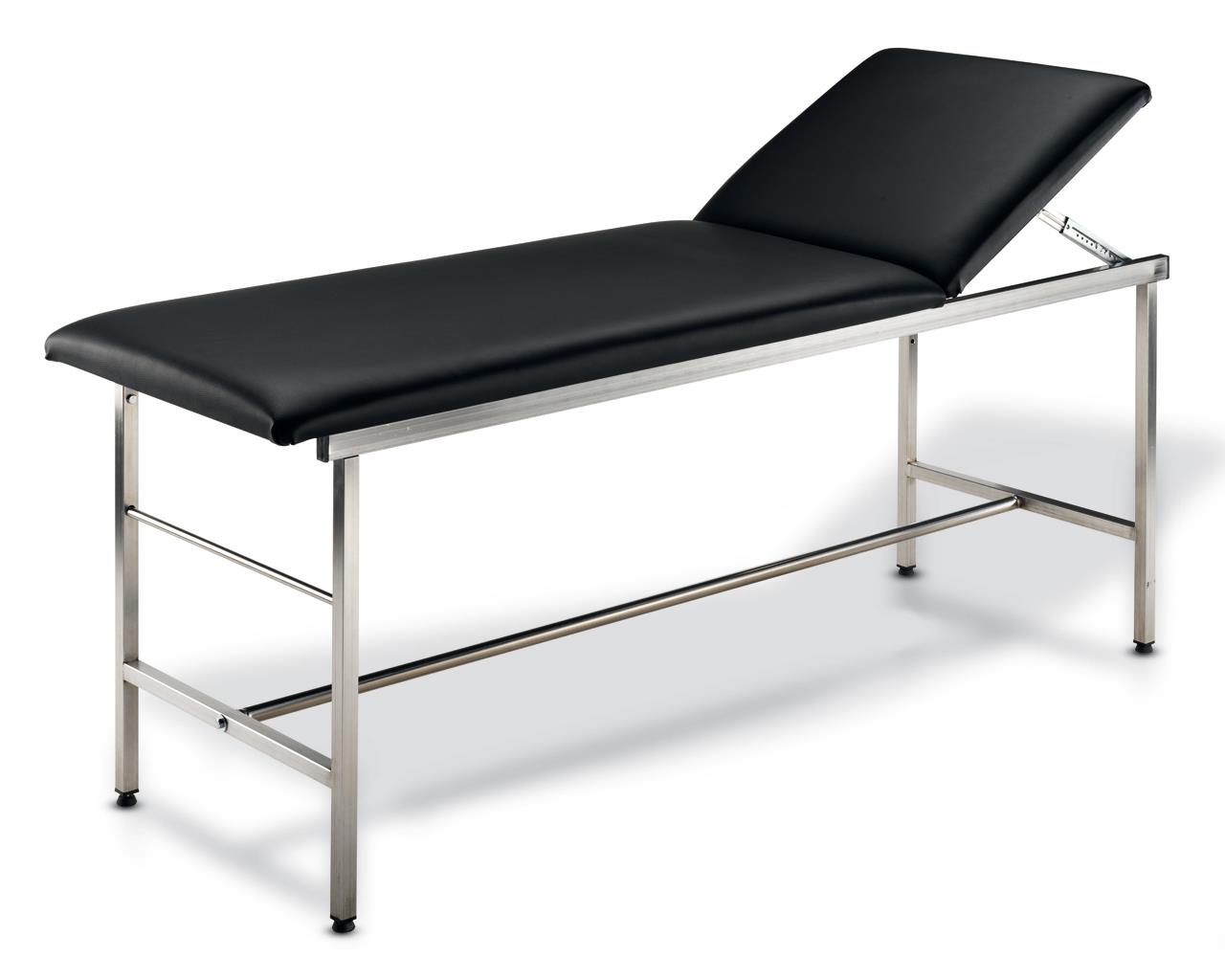 Questo lettino da visita in acciaio inox è progettato per visite e trattamenti non invasivi ambulatoriali. La struttura è realizzata in tubolare d'acciaio inox con schienale regolabile mediante cremagliera e piedini in gomma per stabilità. L'imbottitura è rivestita in materiale plastico lavabile e certificato ignifugo Classe 1 IM.