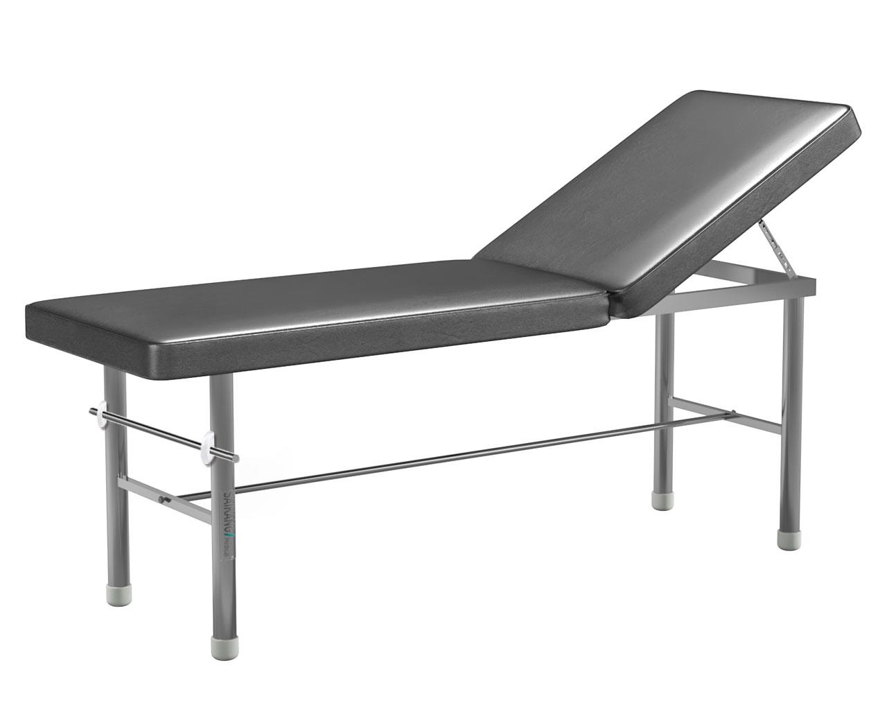 Lettino in acciaio inox, fornito con supporto reggi lenzuolini integrato, progettato per eseguire visite mediche standard in ambulatori, studi medici, centri diagnostici e reparti ospedalieri.