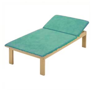 Lettino NEW RAMIN LT 100 in legno per trattamenti metodo Bobath di dimensioni cm 100 × 200 a due sezioni, testata con sistema di regolazione manuale.