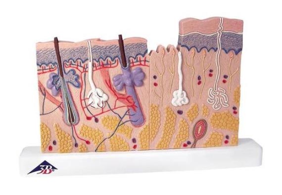 Modello da tavolo ingrandito 40 volte, particolarmente adatto per comparare la cute con e senza peli.