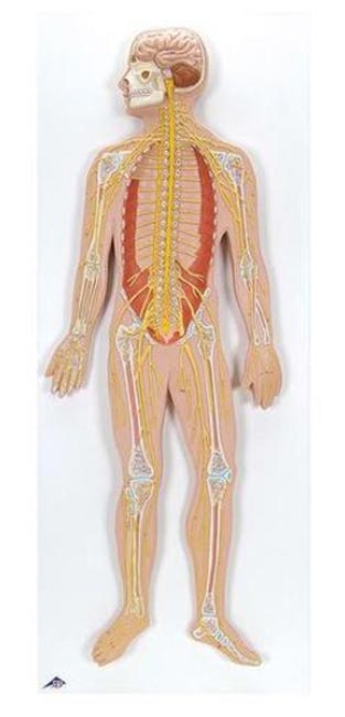 Modello su tavola, in rilievo, che illustra in maniera schematica il sistema nervoso sia centrale che periferico. Si tratta di un modello particolarmente chiaro e comprensibile, adatto allo studio del sistema nervoso umano.