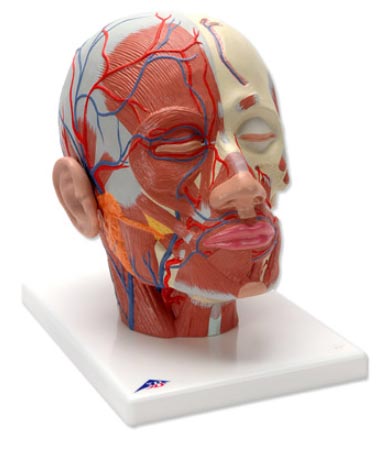 Rappresentazione della muscolatura superficiale della testa e della nuca con: